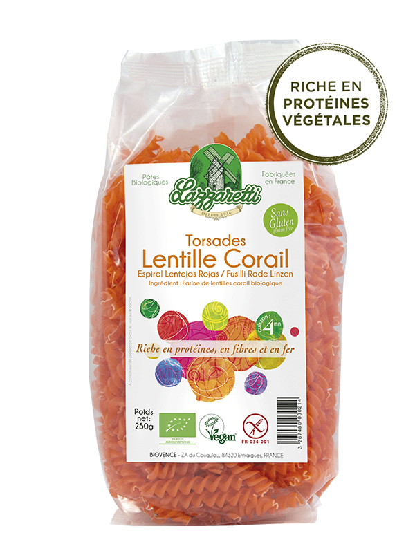 Dans les torsades Bio à base de farine de lentilles corail on retrouve un goût comparable aux lentilles vertes que vous devez connaitre mais celles-ci semblent plus délicates et légèrement plus sucrées (naturellement !!).